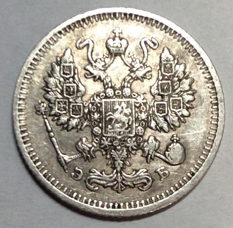 На аверсе изображение Малого Государственного Герба Российской империи образца 1856 года. Слева от хвоста - буква "Э", справа - буква "Б" (инициалы минцмейстера монетного двора).