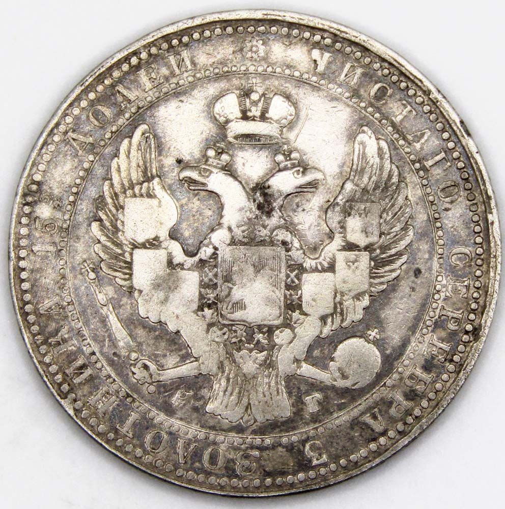 На реверсе серебряной монеты 3/4 рубля - 5 злотых 1837 г.: вдоль края монеты ободок из точек, в центре вверху номинал «3/4», ниже надпись «РУБЛЯ.», под ней польский номинал «5», ниже надпись «ZLOT.» (злотых). Слева вдоль края лавровая ветвь, справа дубовая, внизу ветви соединяются и перевязаны лентой, над ней год выпуска монеты «1837.».