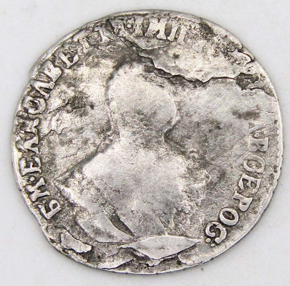 Аверс: в центре обращенный вправо портрет императрицы Елизаветы. Вдоль края надпись «Б.М.ЕЛИСАВЕТА.I:ИМП.ИСАМОД:ВСЕРОС:» (Божьей Милостью Елизавета I Императрица и Самодержица Всероссийская).