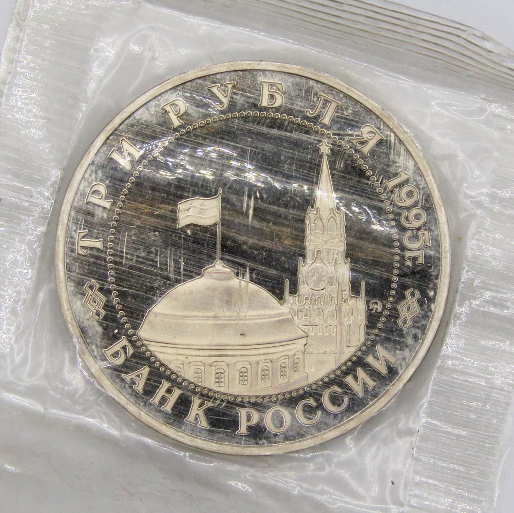 На аверсе монеты 3 рубля 1995 год «Кенигсберг. Освобождение Европы от фашизма»: в центре диска — в центре диска - изображения купола здания Сената и Спасской башни Московского Кремля, справа от них - товарный знак монетного двора. По окружности надписи, обрамлённые кругом из точек: вверху – «ТРИ РУБЛЯ 1995 г.», внизу – «БАНК РОССИИ».