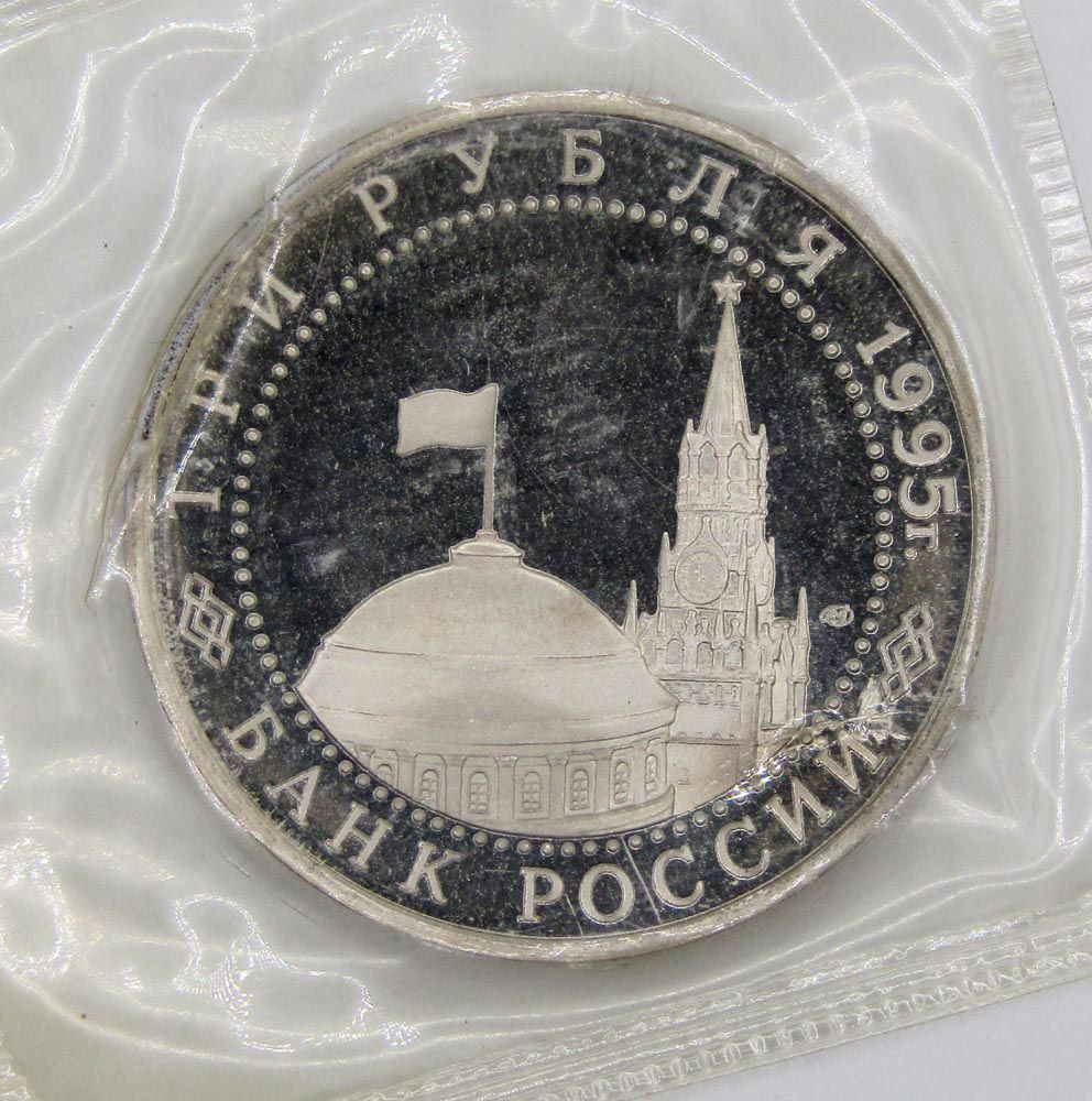 На аверсе монеты 3 рубля 1995 год «Вена. Освобождение Европы от фашизма»: в центре диска — в центре диска - изображения купола здания Сената и Спасской башни Московского Кремля, справа от них - товарный знак монетного двора. По окружности надписи, обрамлённые кругом из точек: вверху – «ТРИ РУБЛЯ 1995 г.», внизу – «БАНК РОССИИ».