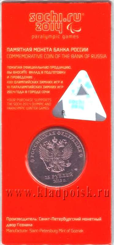 25 рублей Лучик и Снежинка – Талисманы Паралимпиады в красном блистере - юбилейная монета этой серии, выпущена 17 июня 2013 года.