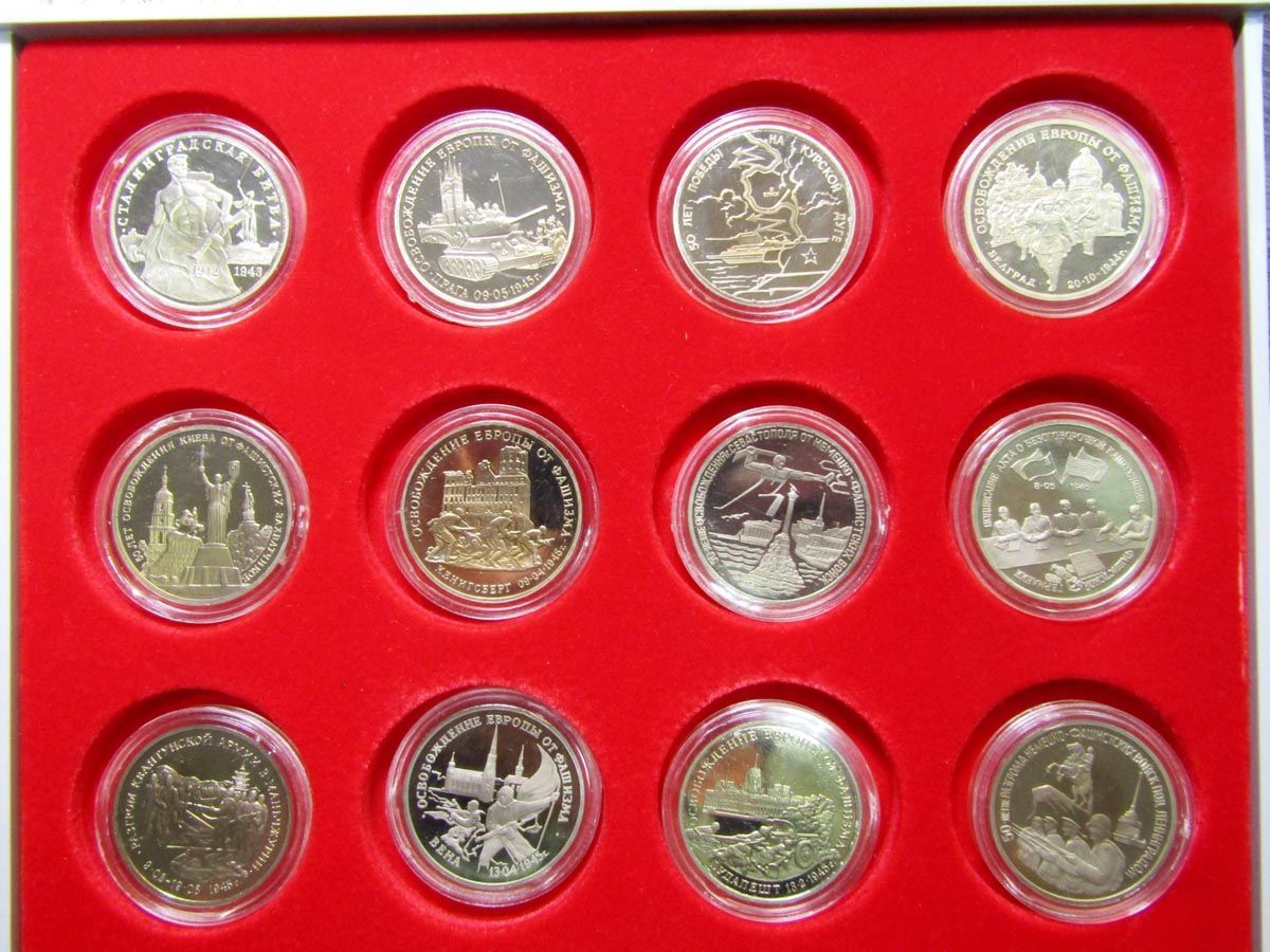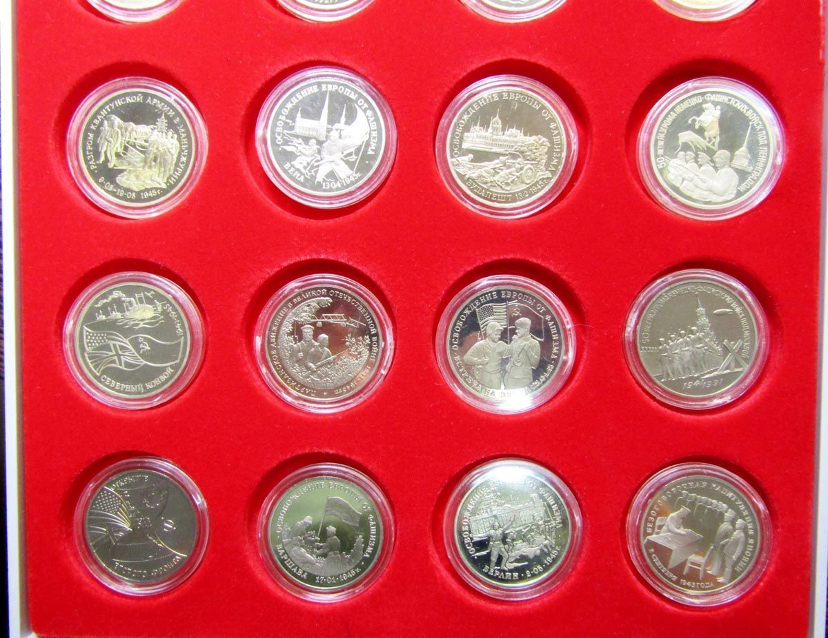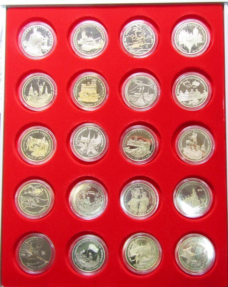 В набор «50 лет ВЕЛИКОЙ ПОБЕДЫ» входит 20 памятных монет Банка России достоинством 3 рубля, качество ПРУФ, выпущенных в 1991-1995 годах. Монеты размещены в капсульном тематическом альбоме из плотного картона.