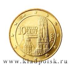 На аверсе монеты 10 cent. Австрия изображен собор Святого Стефана, который располагается в центре Вены и является одним из самых ярких сооружений готического стиля в Европе.