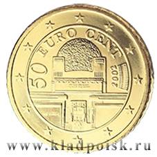На аверсе монеты 50 cent Австрия изображен Павильон Wiener Sezession в Вене. Знаменитый павильон в стиле модерн, иллюстрирующий рождение нового искусства Австрии и новой эры. Мост символизирует между переход между старой и новой денежными системами.