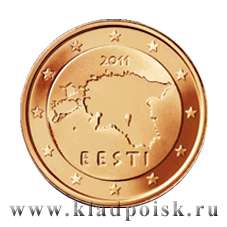 На аверсе монеты 5 центов Эстония расположена контурная карта Эстонии, по кругу – 12 звезд.