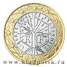 На аверсе монеты 1 изображено стилизованное «дерево жизни», нарисованное художником Джоквимом Дименезом (Joaquim Jiminez), олицетворяющее жизнь, непрерывность развития природу и стойкость. <br /> Корни дерева символизируют прошлое, крона – будущее, они неразрывно связаны друг с другом. Дерево жизни заключено в шестиугольник – который символично отображает очертания Франции.<br />