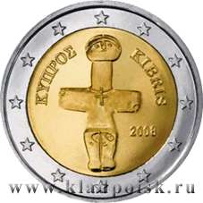На аверсе монеты 2 Евро Кипр изображение Помосского идола, древней кипрской деревни Помос. Крестообразная скульптура изображает женщину с разведёнными в разные стороны руками и крестом на шее. В эпоху энеолита Помосский идол символизировал плодородие, фигурки носили в качестве оберега на шее. <br /> Сейчас скульптура выставлена в Археологическом музее Кипра в Никосии.<br />