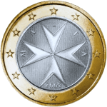На аверсе монеты 1 euro Мальта - мальтийский крест, символ некогда могущественного рыцарского ордена, основанного в ХII веке в Палестине. При том, как орден стал вселенским, разделенным на восемь "языков", главных государств Европы (число восемь - универсальное число направлений пространства). Рыцари сохранили своё название "госпитальеры св. Иоанна" и красную мантию с вышитым белым шелком восьмиконечным крестом. Мальтийский крест - символом целомудрия и восьми рыцарских добродетелей.