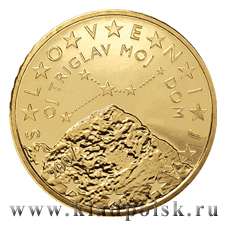 На аверсе монеты 50 евроцентов Словения изображение Горного массива Триглав, над горой созвездие Рака. Триглав - высочайшая гора в Словении, является национальным символом страны.