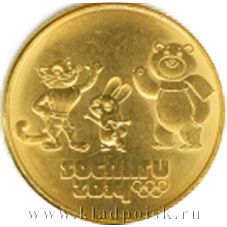 Монета Сочи Талисманы, позолоченная