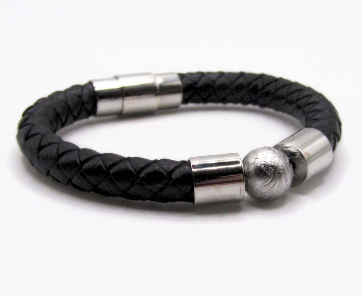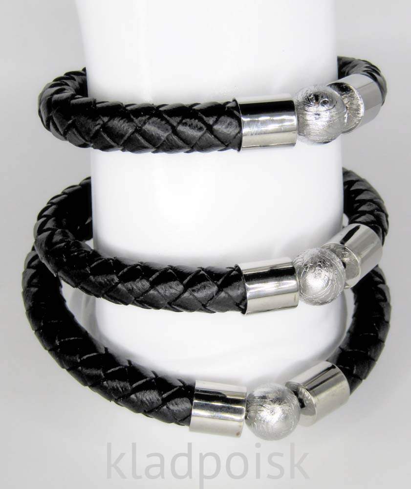 Браслет выполнен из плетеной экокожи и металла.