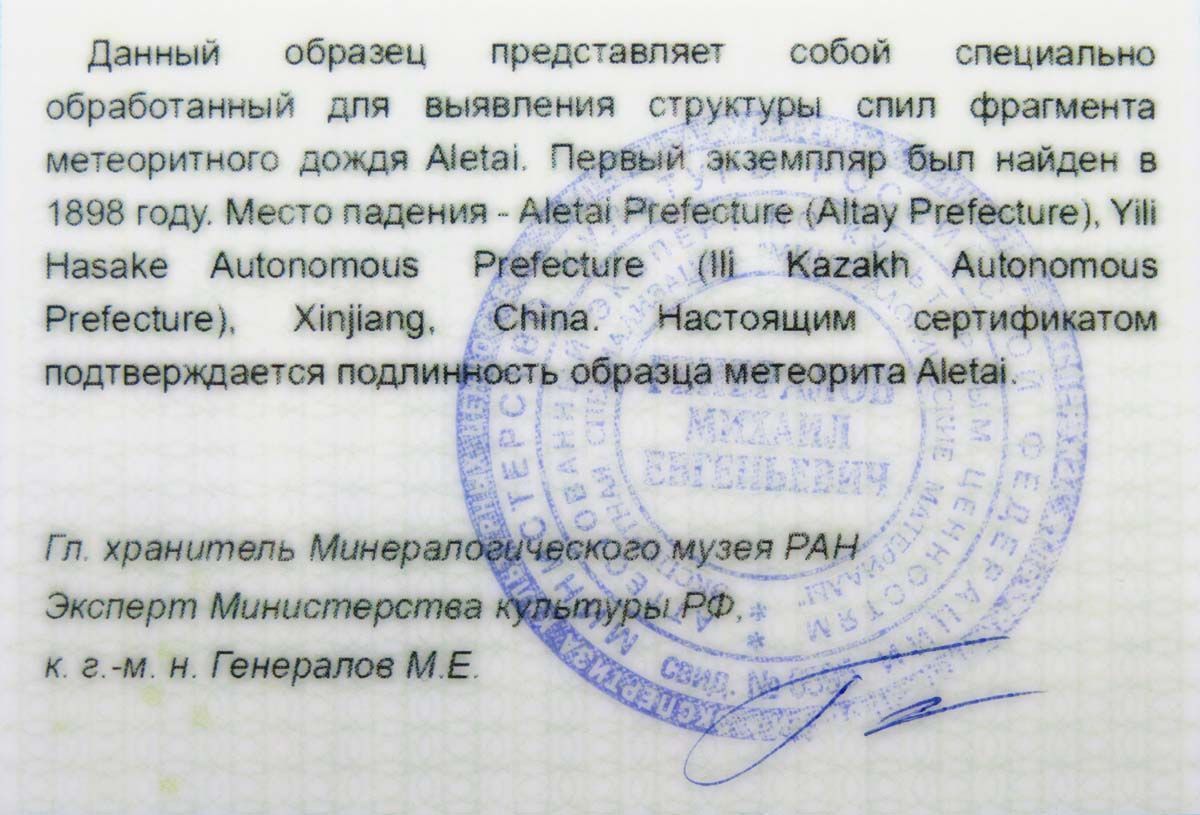 О метеорите Aletai