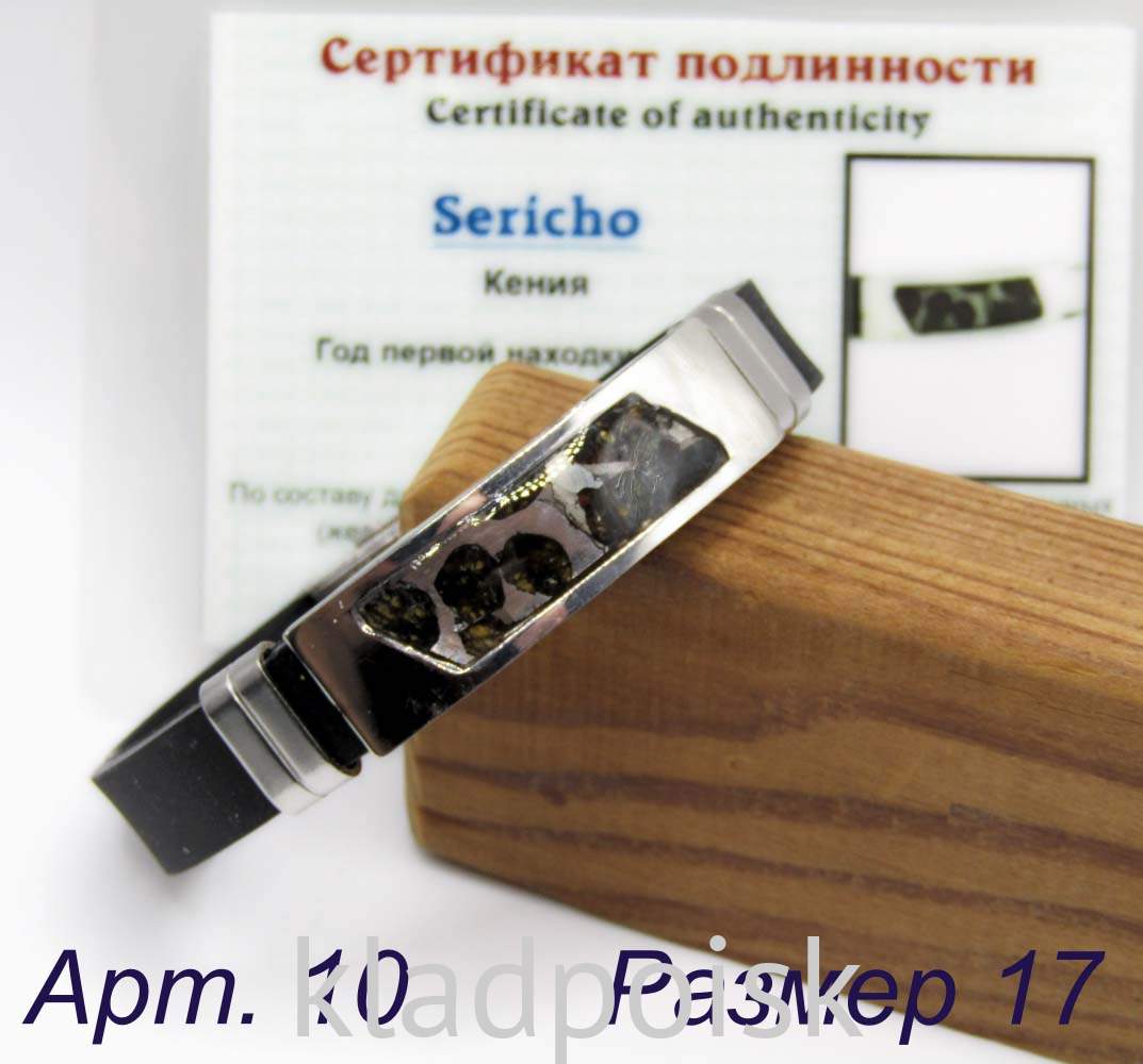 В комплекте с браслетом прилагается сертификат, подтверждающий подлинность метеорита в этом браслете.