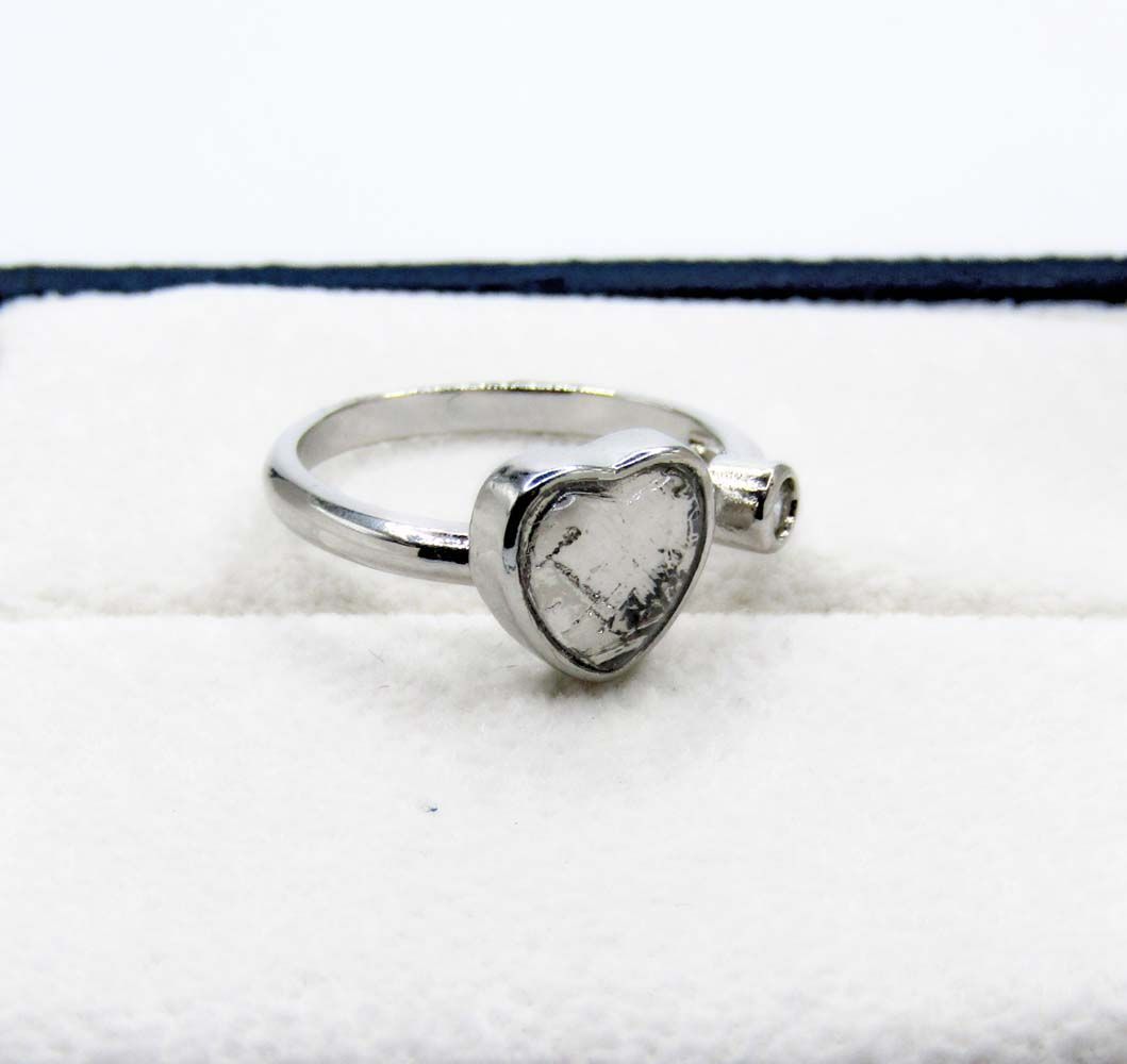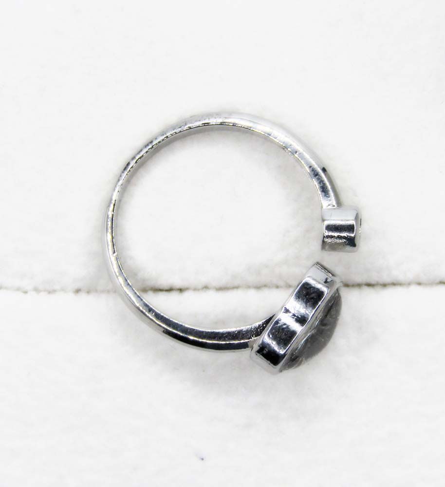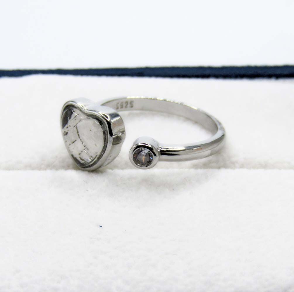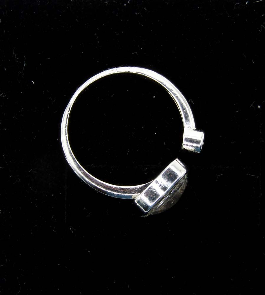 Кольцо выполнено из медицинской стали. Вставка из метеорита покрыта стеклом. Благодаря мягкой стали размер регулируется от 16 до 20.