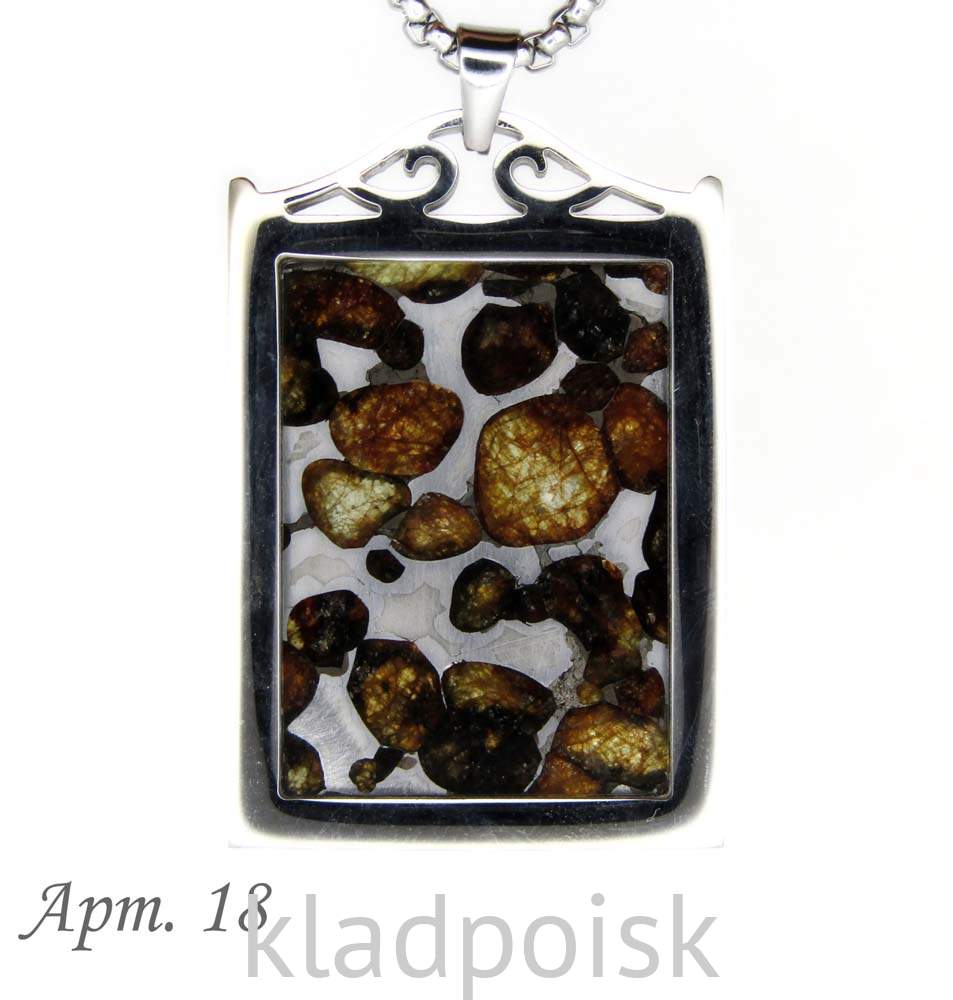 Кулон выполнен из стали. В оправу помещена пластина из метеорита Sericho.