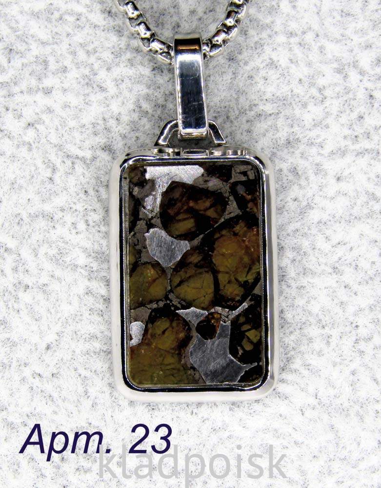 Кулон выполнен из стали. В оправу помещена пластина из метеорита Sericho. Сверху метеорит защищен стеклом.