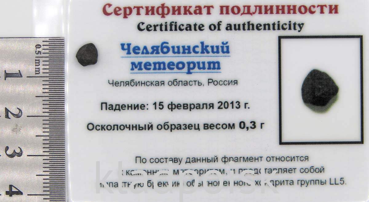 На землю в районе города Челябинска упал метеорит весом 10 тонн и диаметром не менее 17 м, он вошел в атмосферу Земли под углом примерно в 20°. По оценкам экспертов примерно на высоте около 20-25 км метеорит раскололся на части и его обломки с огромной скоростью обрушились на землю.