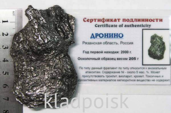 Мы предлагаем осколок небесного пришельца, метеорита Дронино. Неизвестно сколько времени продолжалось его путешествие и откуда он прилетел, но сейчас его можно держать в руках.