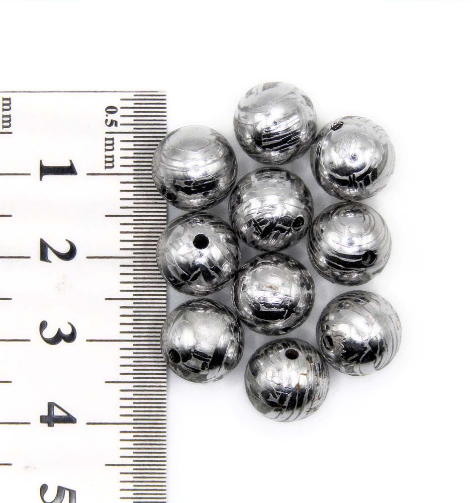 Шары диаметром 10 мм с отверстием изготовлены из осколков метеорита Aletai, вес каждого составляет: 4 грамма (+/- 0,2 гр).