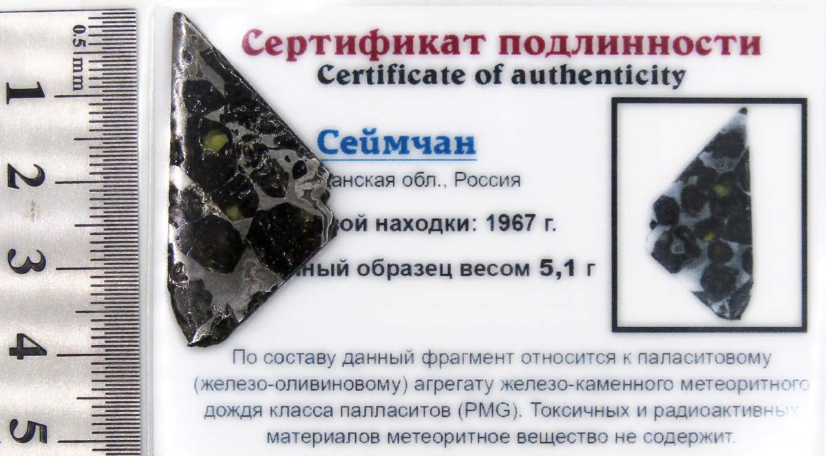 Современные исследования показали, что по структуре эти экземпляры являются железокаменными метеоритами – палласитами, что привело к переклассификации этого метеорита. Он перешел в главную химическую группу более редкого класса паласситов (Pallasite, PMG). Таким образом, метеорит Сеймчан представляет собой редкий тип метеоритов, у которого встречаются чисто железные фрагменты и палласитовые фрагменты, но бывают и экземпляры, в которых две эти составляющие находятся в различных пропорциях.