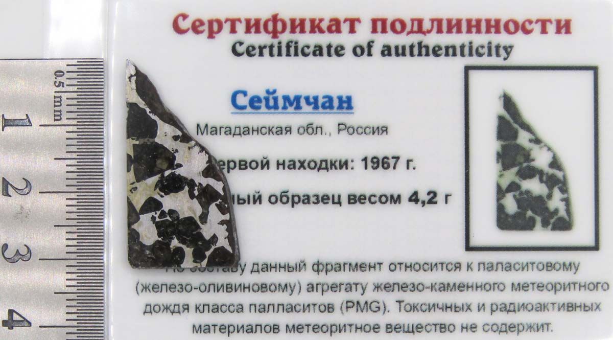 Современные исследования показали, что по структуре эти экземпляры являются железокаменными метеоритами – палласитами, что привело к переклассификации этого метеорита. Он перешел в главную химическую группу более редкого класса паласситов (Pallasite, PMG). Таким образом, метеорит Сеймчан представляет собой редкий тип метеоритов, у которого встречаются чисто железные фрагменты и палласитовые фрагменты, но бывают и экземпляры, в которых две эти составляющие находятся в различных пропорциях.