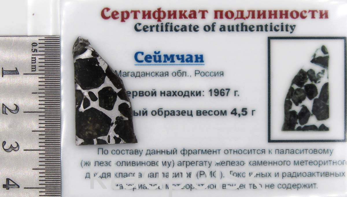 Современные исследования показали, что по структуре эти экземпляры являются железокаменными метеоритами – палласитами, что привело к переклассификации этого метеорита. Он перешел в главную химическую группу более редкого класса паласситов (Pallasite, PMG). Таким образом, метеорит Сеймчан представляет собой редкий тип метеоритов, у которого встречаются чисто железные фрагменты и палласитовые фрагменты, но бывают и экземпляры, в которых две эти составляющие находятся в различных пропорциях.