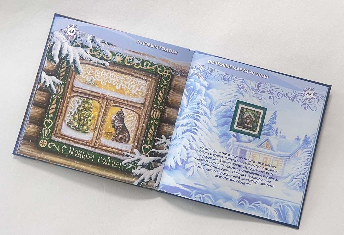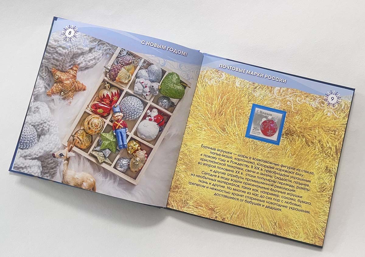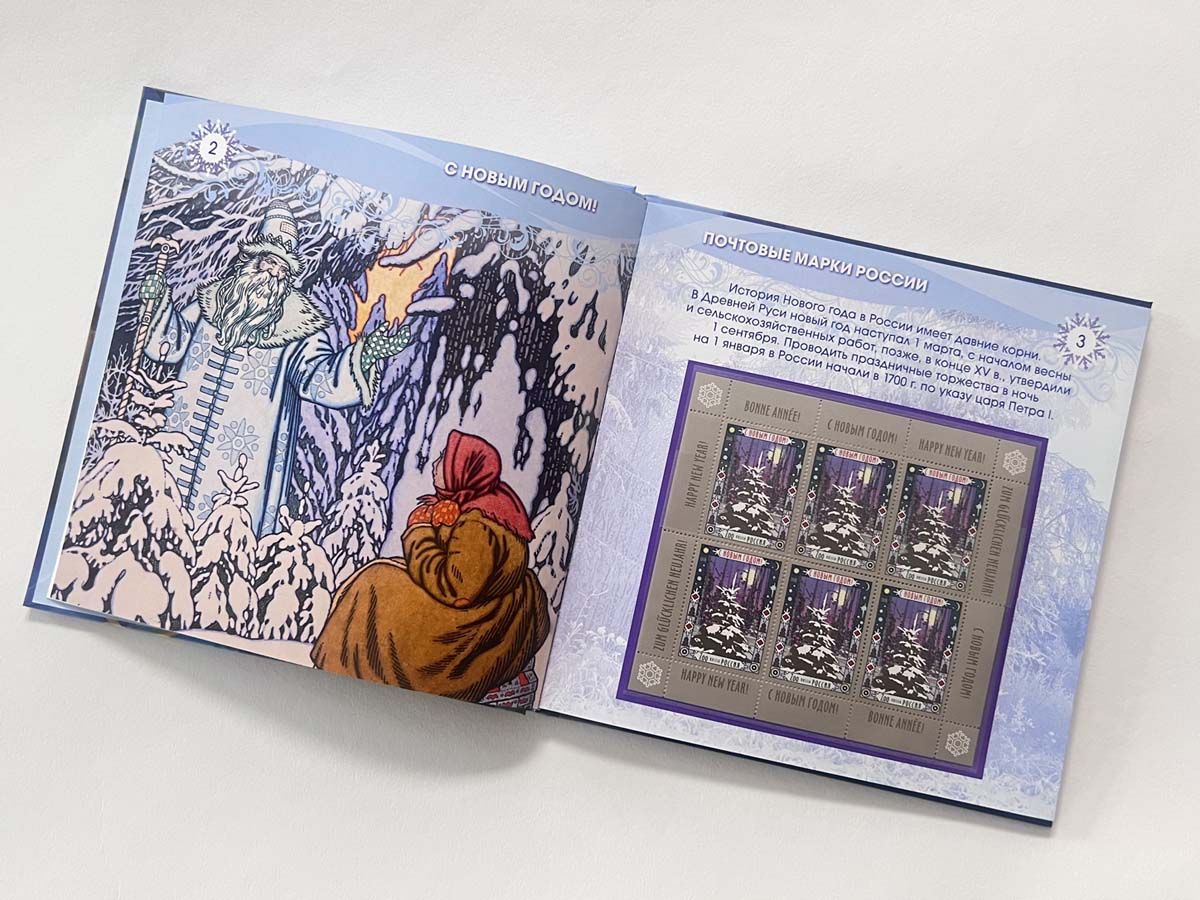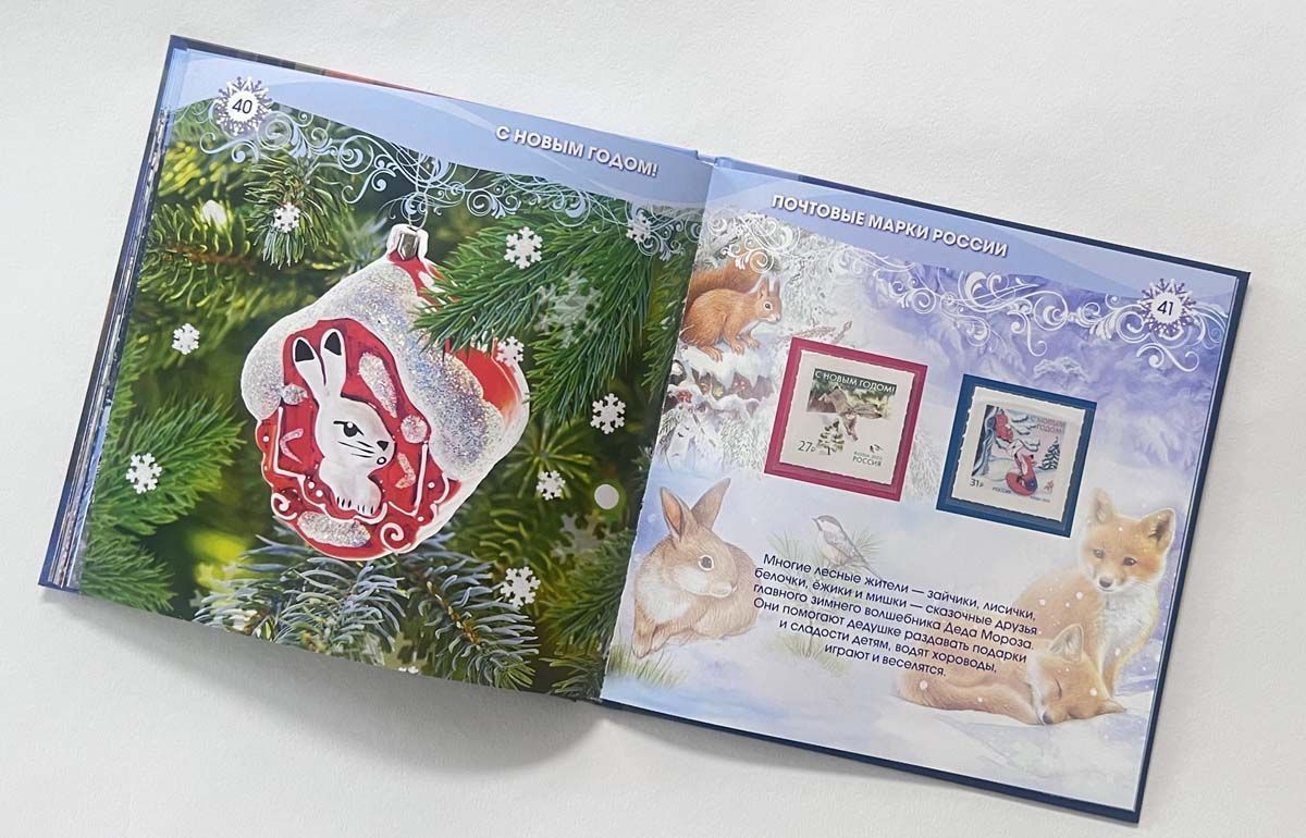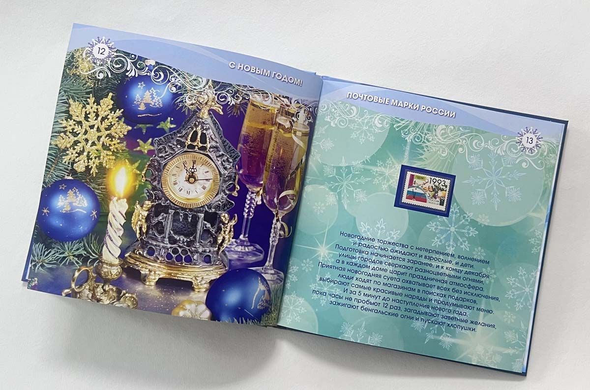 Красочный альбом включает в себя новогодние почтовые марки России:
